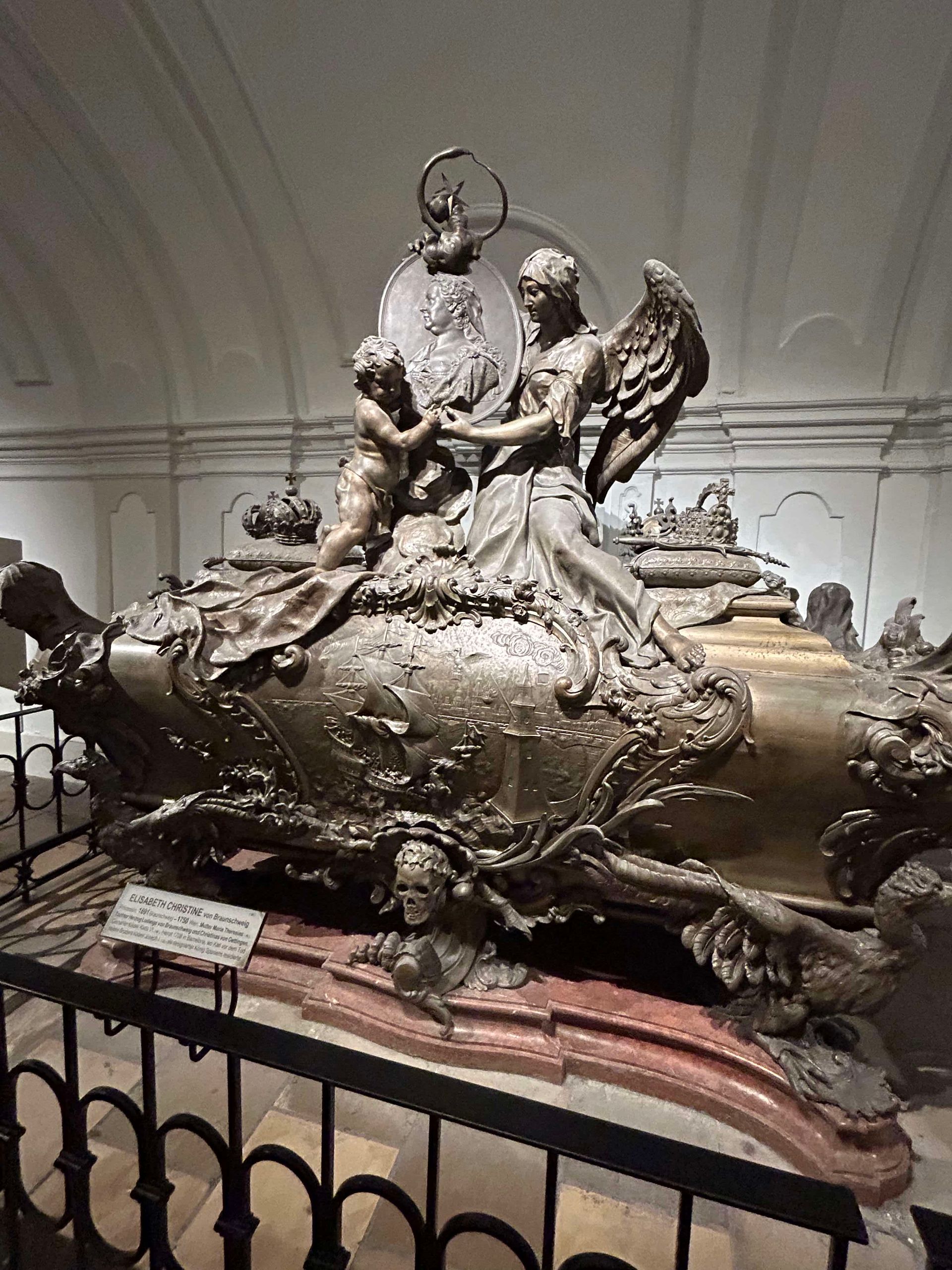 This is the Imperial Crypt. It holds the bodies of 145 people plus 4 urns with cremains or the heart of Habsburg royal family members. This includes 12 emperors and 18 empresses. Most of the tombs are very ornate and interesting.